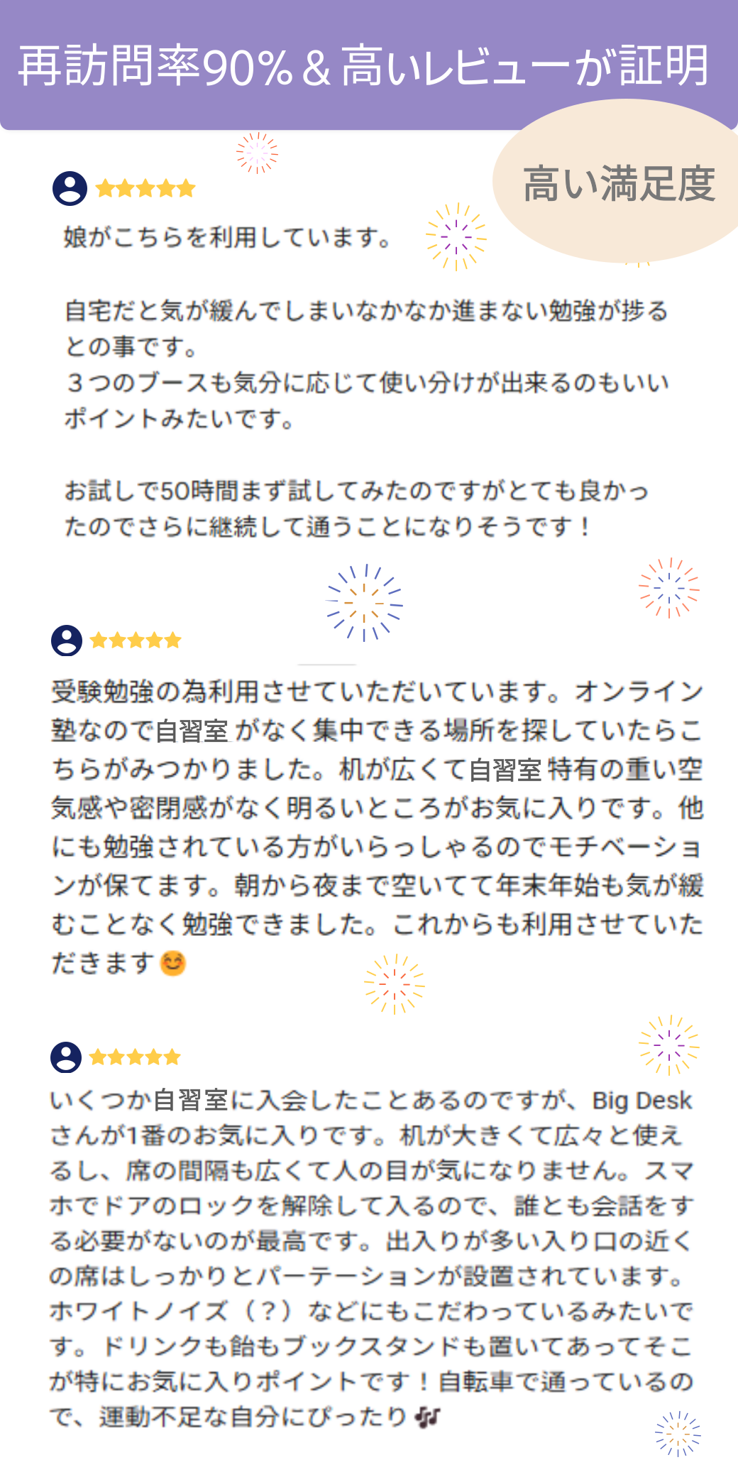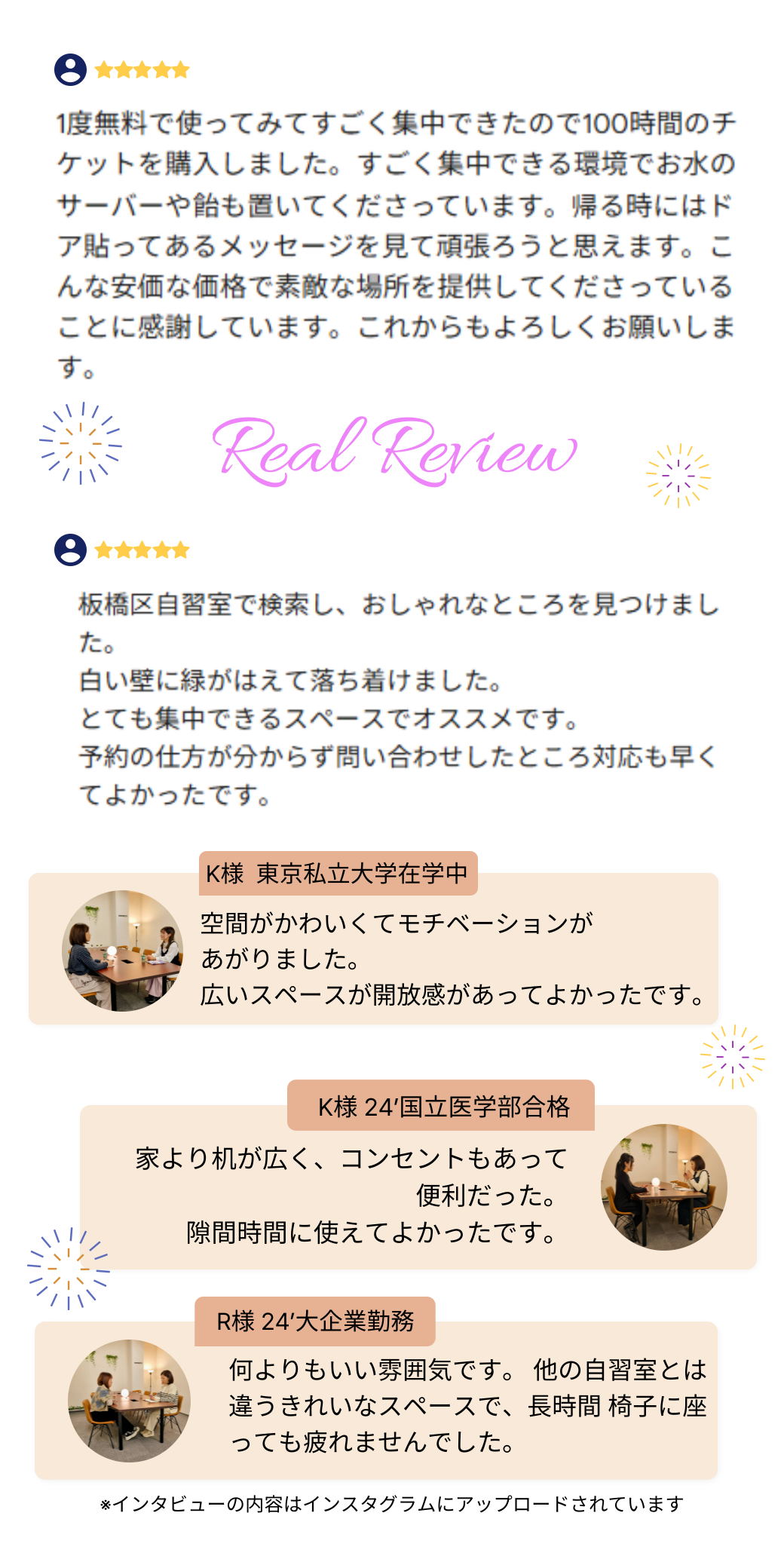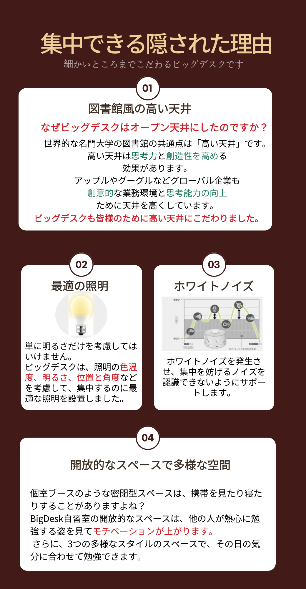 快適な勉強環境のために、飲み物やチョコレート、キャンディーなどの簡単な食べ物のみを許可しています。